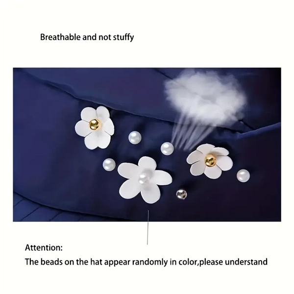 Delicate pearl and flower details on the brim add a chic, feminine touch—turn heads whether you’re out shopping, walking in the park, or lounging on the beach.