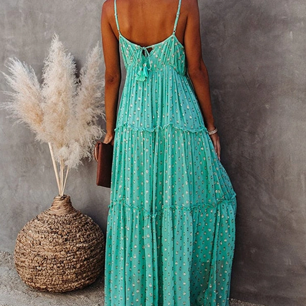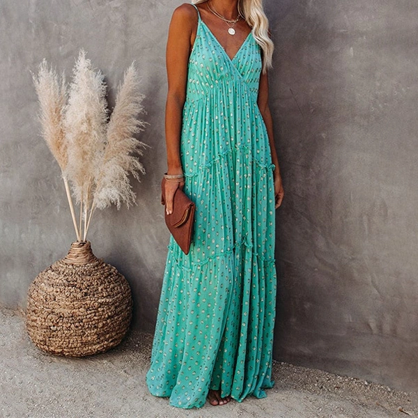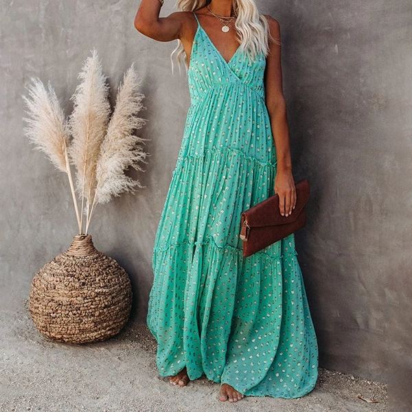 Summer is here, and this boho style sundress is the perfect way to make the most of it. This boho maxi dress features a flattering V-neckline, comfortable and spaghetti straps that will keep you feeling sexy all day long. The green color makes it the perfect addition to any summer wardrobe, and the floral pattern makes it just as unique as you are.