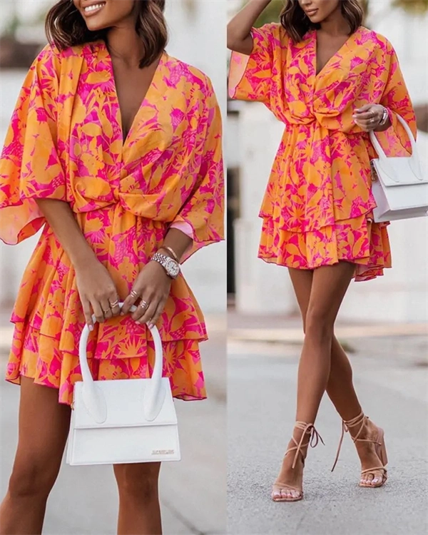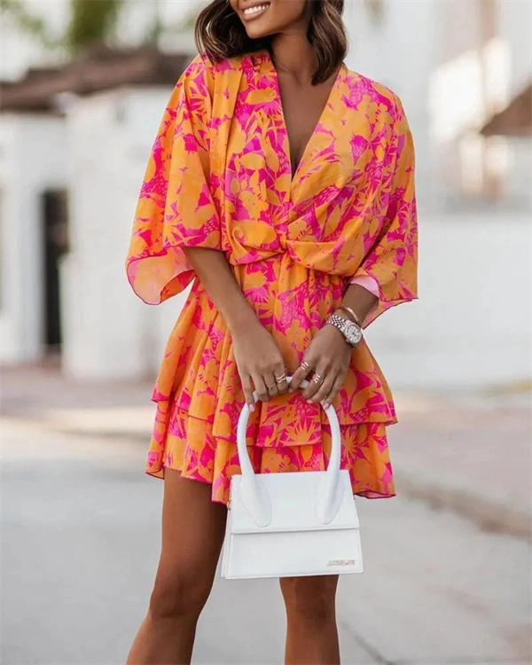 Boho Floral Ruffle Mini DressBoho Floral Ruffle Mini Dress