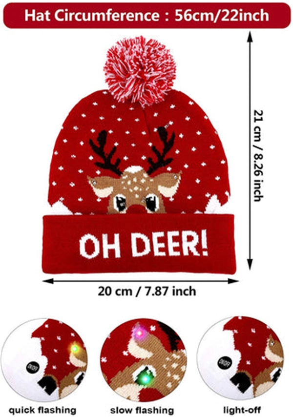 • Beautiful Design: Christmas hat with a design pattern of Christmas tree and gingerbread man and with six colored led lights, which meet the holiday needs and beautiful fashion
