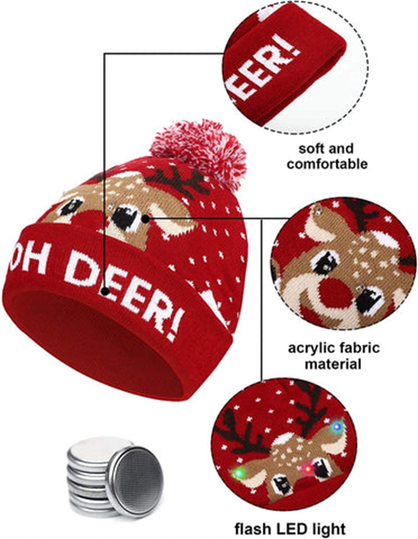 Christmas LED Beanie – Light-Up Knitted Hat for Holiday Fun