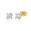 Iced Out Round CZ Stud Earrings – 4-Prong Hip Hop Style with S925 Silver Posts for Men & Women
