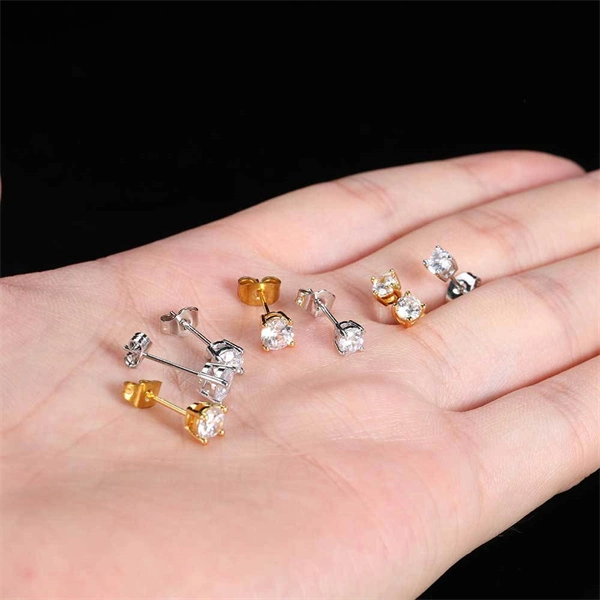 Iced Out Round CZ Stud Earrings – 4-Prong Hip Hop Style with S925 Silver Posts for Men & WomenIced Out Round CZ Stud Earrings – 4-Prong Hip Hop Style with S925 Silver Posts for Men & Women