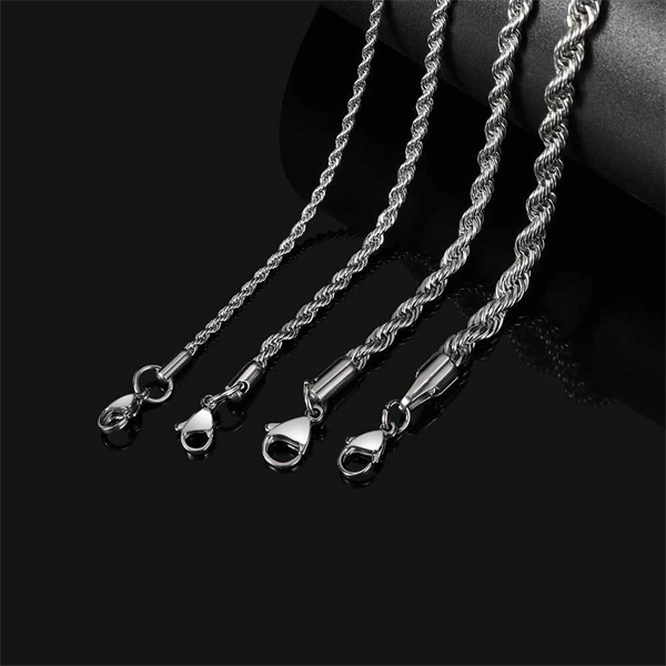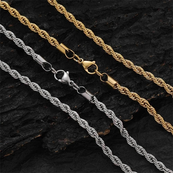 Step up your streetwear game with this Stainless Steel Rope Chain Necklace — a bold and timeless piece designed for everyday flexing. Featuring a twisted rope-style link, this chain brings rugged charm and sleek shine in one powerful combo.