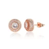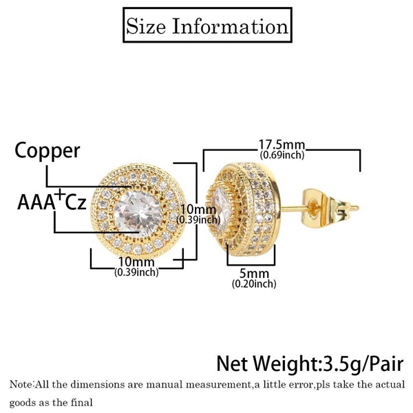 Crafted with AAA-grade CZ zircon stones, these studs are paved perfectly around a bold, round design, catching the light from every angle. Their 925 silver post ensures durability and a comfortable fit, while the copper base provides a solid foundation for the eye-catching stones.