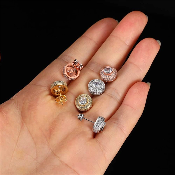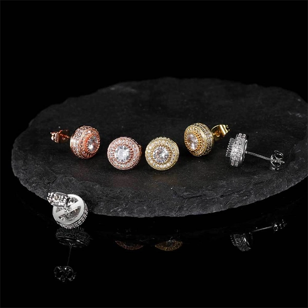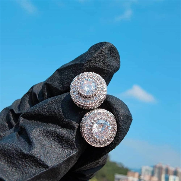 Round Zircon Paved Hip Hop Stud Earrings – 925 Silver Post, High-End & Unique AccessoryRound Zircon Paved Hip Hop Stud Earrings – 925 Silver Post, High-End & Unique Accessory