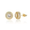Round Zircon Paved Hip Hop Stud Earrings – 925 Silver Post, High-End & Unique Accessory