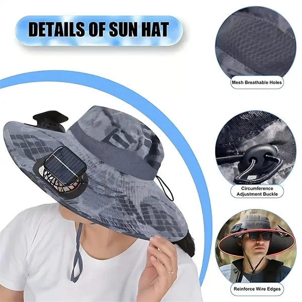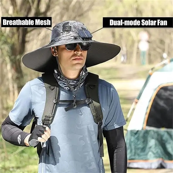 This wide brim solar fan outdoor fishing hat is designed to be worn on the head, leaving your hands free. Built in a mini fan at the front of the brim, cooling the face. You can hang the outdoor fishing sun cap around your head and take it everywhere, will not feel uncomfortable.