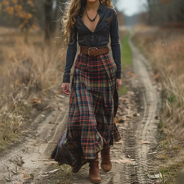 Women's Retro Plaid Cotton-Linen Skirt – Vintage Pastoral StyleWomen’s Retro Plaid Cotton-Linen Skirt – Vintage Pastoral Style